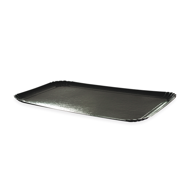 Plateau traiteur noir en carton. Impression sur deux faces, dessus Noir et dessous Noir, produit très rigide 1100 g/m²