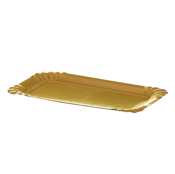 Plateau traiteur or en carton. Impression sur une face : dessus Or et dessous Blanc, produit très rigide 550g/m²
