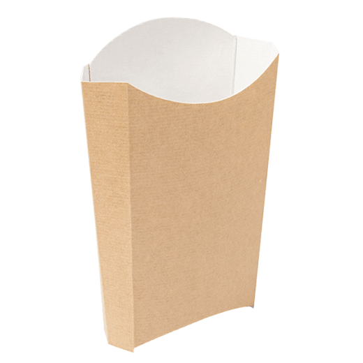 Pochette à frites standard en carton ondulé nano micro triple couche 220 g/m². Contient une couche interne de papier résistant à l'humidité et à la graisse grâce à un nouveau procédé de fabrication.