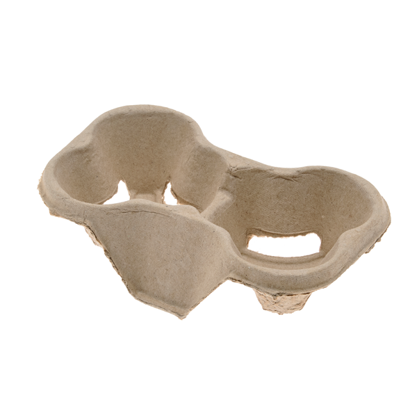 Porte gobelets en carton recyclé en fibre moulé, traitement résistant à l'eau, idéal pour le transport. Deux emplacements.