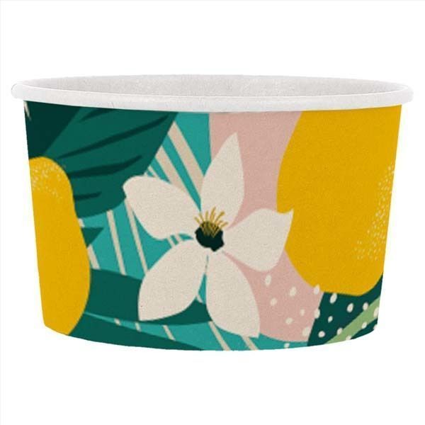 En carton 250 g/m² + 18 g PE, très résistant au contact du froid.