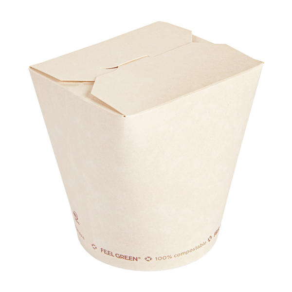 Pot en carton avec fermeture croisillon, épaisseur 325 g/m², sans aucun revêtement en plastique lui permettant d'être 100% compostable mais toujours résistant aux graisses, étanche et micro-ondable.