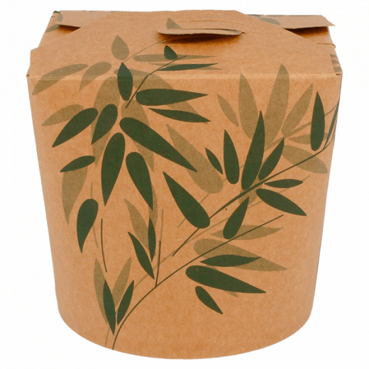 Pot en carton avec fermeture croisillon, épaisseur 275 g/m² + PE 25 g/m², résistant aux graisses et micro-ondable.