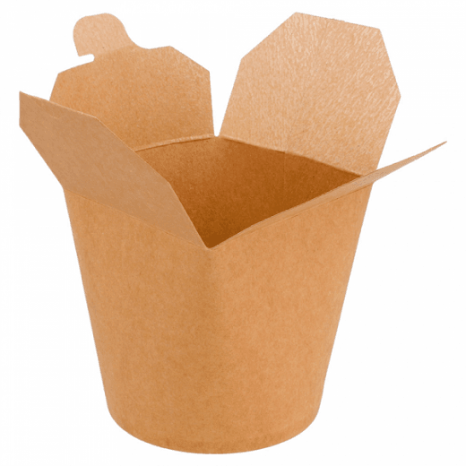 Pot en carton avec fermeture croisillon, épaisseur 275 g/m² + PE 25 g/m², résistant aux graisses et micro-ondable.