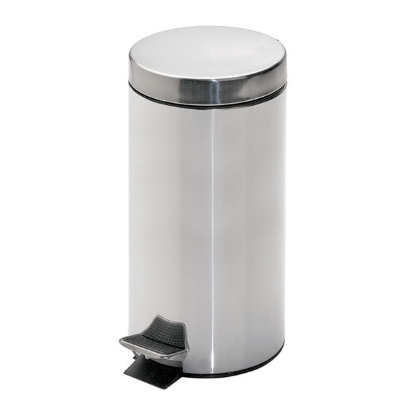 Poubelle à pédale en inox avec réceptacle à l'intérieur.