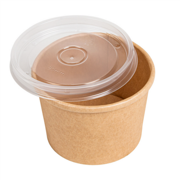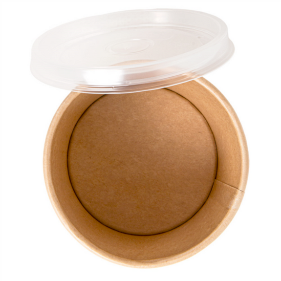 Ensemble composé d'un pot en carton kraft naturel avec un revêtement intérieur en PE et d'un couvercle transparent en PP, conçu pour contenir des aliments et/ou des liquides froids ou chauds en toute sécurité. Disponible en différents formats, ce contenant offre une solution pratique pour le take away et la livraison. L'intérieur plastifié garantit une résistance aux graisses et aux liquides, tandis que le couvercle en PP assure une fermeture fonctionnelle et une bonne conservation du contenu. Sa transparence permet de voir l'intérieur. Idéal pour les soupes, crèmes, desserts ou portions individuelles.