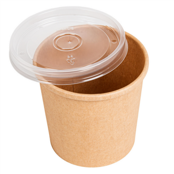 Ensemble composé d'un pot en carton kraft naturel avec un revêtement intérieur en PE et d'un couvercle transparent en PP, conçu pour contenir des aliments et/ou des liquides froids ou chauds en toute sécurité. Disponible en différents formats, ce contenant offre une solution pratique pour le take away et la livraison. L'intérieur plastifié garantit une résistance aux graisses et aux liquides, tandis que le couvercle en PP assure une fermeture fonctionnelle et une bonne conservation du contenu. Sa transparence permet de voir l'intérieur. Idéal pour les soupes, crèmes, desserts ou portions individuelles.