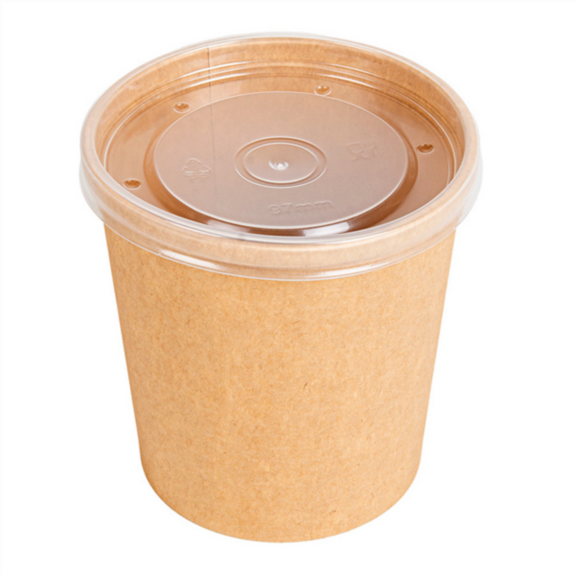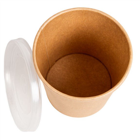 Ensemble composé d'un pot en carton kraft naturel avec un revêtement intérieur en PE et d'un couvercle transparent en PP, conçu pour contenir des aliments et/ou des liquides froids ou chauds en toute sécurité. Disponible en différents formats, ce contenant offre une solution pratique pour le take away et la livraison. L'intérieur plastifié garantit une résistance aux graisses et aux liquides, tandis que le couvercle en PP assure une fermeture fonctionnelle et une bonne conservation du contenu. Sa transparence permet de voir l'intérieur. Idéal pour les soupes, crèmes, desserts ou portions individuelles.