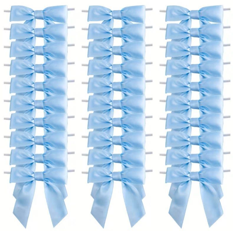 Ruban noeud couleur satin bleu avec lien twist métal inclus (à insérer manuellement dans les noeuds). Idéal pour fermer vos sachets et apporter une touche d'élégance.