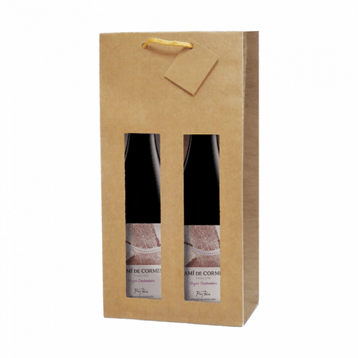 Sac pour deux bouteilles luxe anse avec cordon, fenêtre de visualisation et carte message