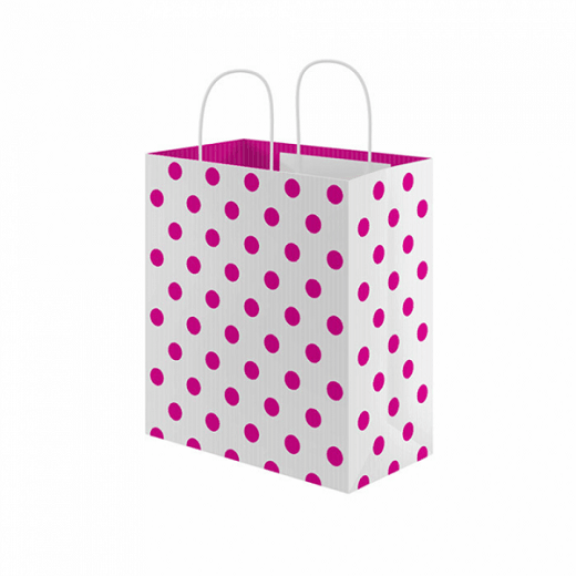 Sac papier avec anse 20+10x29cm - Motifs pois Fuchsia - Carton de 250