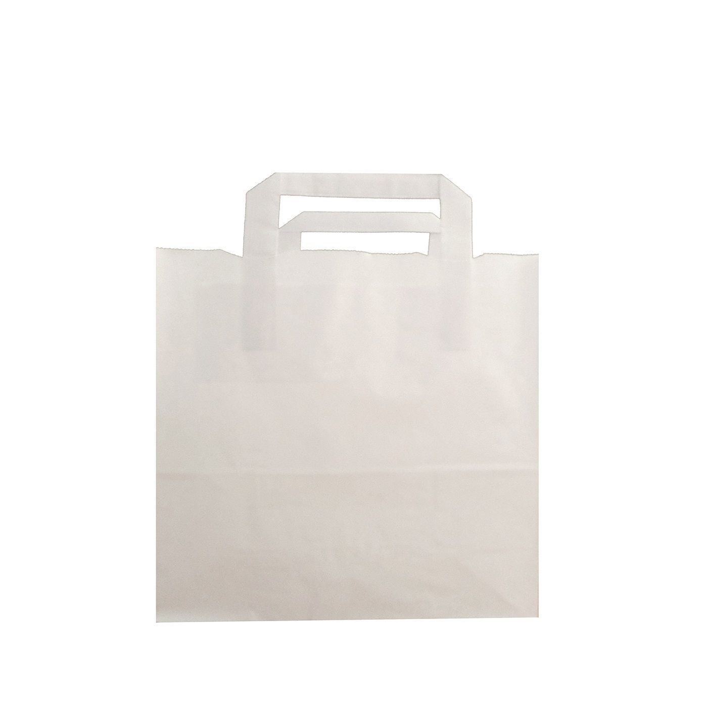Sac papier avec poignées plates 32 + 16 x 31 cm neutre BLANC - carton de 250 unités