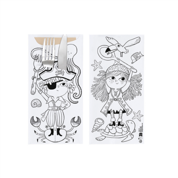 Sachet pour couverts à colorier, modèle spécialement pensé pour les enfants afin de les faire patienter pendant le repas