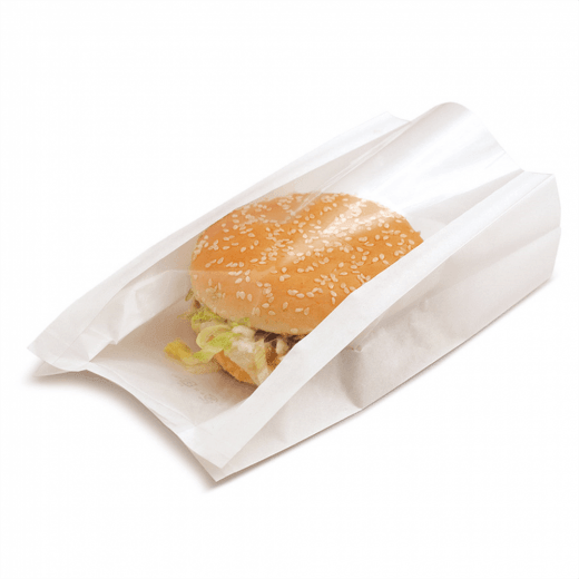 Sac idéal pour la vente à emporter d'impulsion. Vous pouvez fermer le sac avec une etiquette autocollante. Sac avec fenêtre transparente, pour voir le produit. Important effet pour les ventes. SAC LAMINÉ AVEC POLYÉTHYLÈNE, PROTÈGE DES SAUCES ET LIQUIDES.