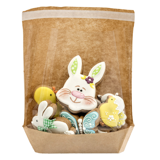 Sachet kraft avec fermeture autoadhésive, base large et fenêtre.