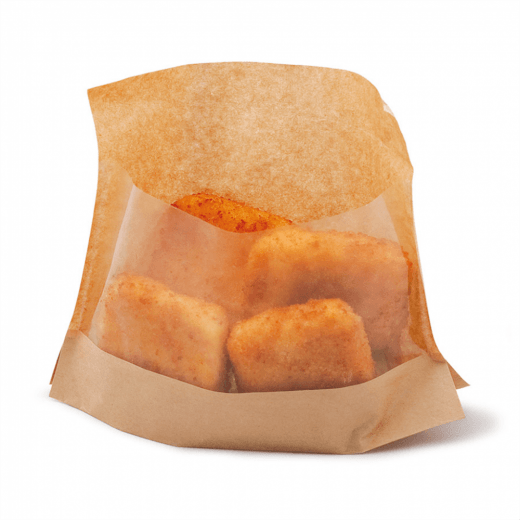 Sa base permet d'exposer le produit dans un display attirant. La distance entre les soufflets est très haute, permettant d'insérer les produits facilement à l'intérieur et les fermer après avec une étiquette autocollante si nécessaire. Prend moins espace de stockage par rapport aux emballages en plastique. La fenêtre en plastique permet un effet visuel exceptionnel. Ouverture facile et idéal pour vente à emporter.