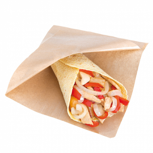 Sac avec ouverture sur 2 côtés. Facile à emballer, facile à transporter, facile à manger. Papier fin, peut être plié selon le type de produit. Sac laminé avec polyéthylène, protège des sauces et liquides.