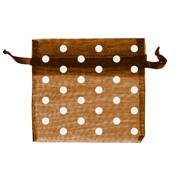 Sachet organza chocolat à pois blanc avec fermeture satinée 15 x 24 cm - Pack de 48 unités