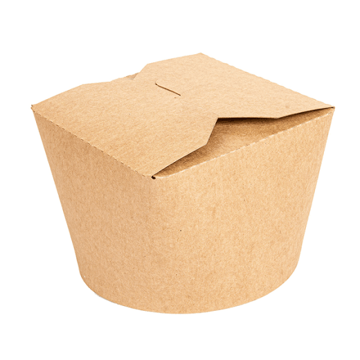 Pot en carton avec fermeture croisillon, épaisseur 275 g/m² + PE 25 g/m², résistant aux graisses et micro-ondable.