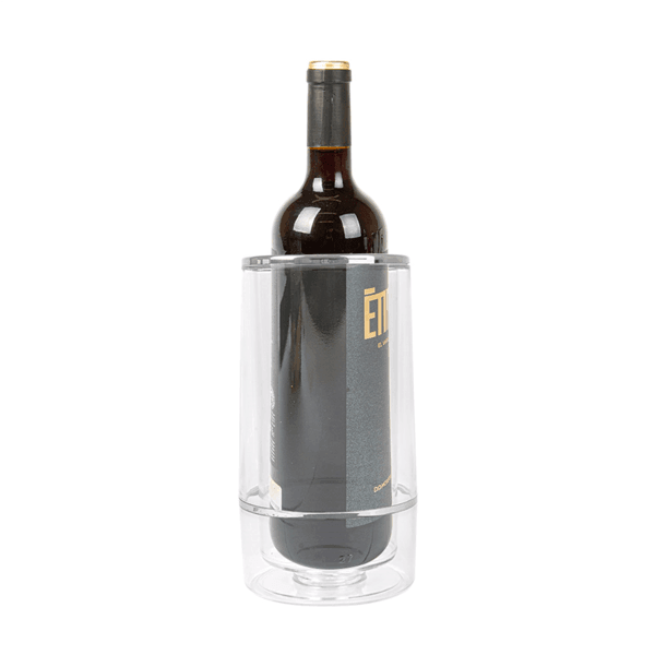 Seau refroidisseur à vin argenté en acrylique transparent.