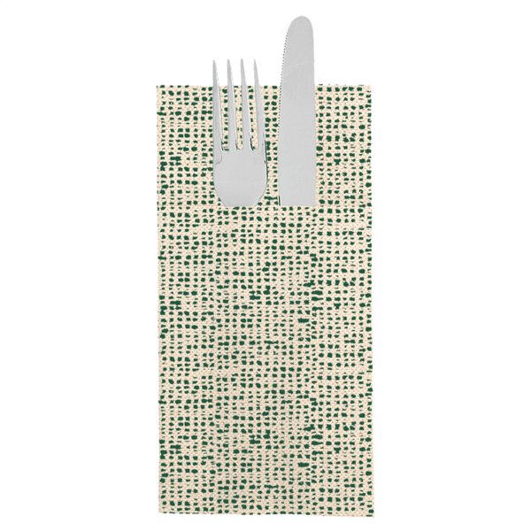 Serviette livrée en pliage kangourou de façon à recevoir les couverts, idéale pour les terrasses des hotels et restaurants.