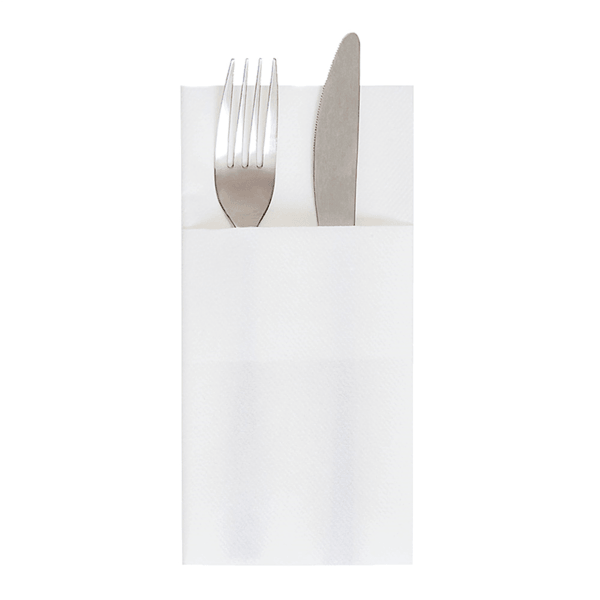 Serviette livrée en pliage kangourou de façon à recevoir les couverts, idéale pour les terrasses des hotels et restaurants.