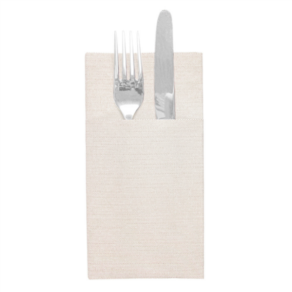 Serviette like linen livrée en pliage kangourou de façon à recevoir les couverts, idéale pour les terrasses des hotels et restaurants.