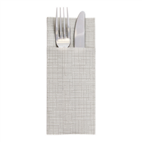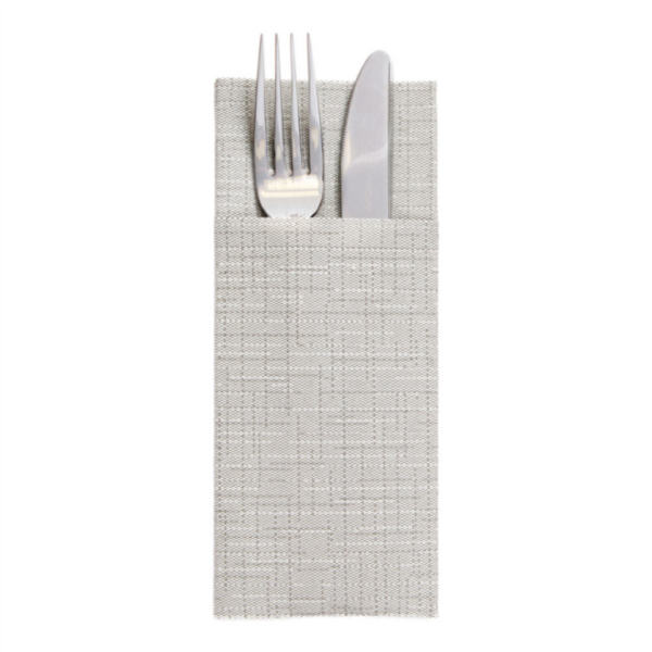 Cette serviette kangourou est fabriquée en matériau Airlaid de 55 g/m² et présente une couleur grise avec une texture qui imite le tissu de lin, composée d'un motif quadrillé fin et régulier qui ajoute une touche d'élégance et de chaleur. Elle incorpore une poche pratique intégrée dans laquelle des couverts peuvent être placés, ce qui facilite un dressage rapide et ordonné de la table. Le design de la poche est parfaitement aligné avec le reste du corps de la serviette, maintenant la continuité du motif visuel. Sa taille est de 33 x 40 cm, ce qui la rend fonctionnelle à la fois comme serviette et comme porte-couverts. Grâce à sa douceur et sa résistance, elle offre une expérience confortable au convive et garantit un aspect soigné tout au long du service. Ce produit est particulièrement utile dans les restaurants, lors d'événements ou dans les services de traiteur où une présentation sophistiquée et efficace est requise sans avoir à utiliser des textiles traditionnels.