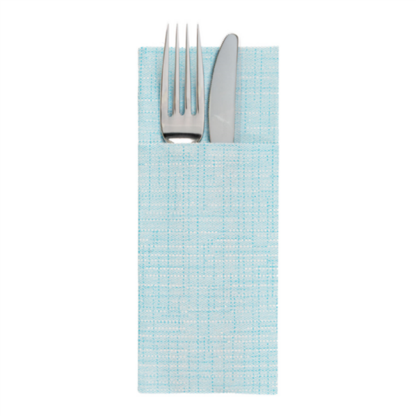 Cette serviette kangourou est fabriquée en matériau Airlaid de 55 g/m² et présente une couleur turquoise avec une texture qui imite le tissu de lin, composée d'un motif quadrillé fin et régulier qui ajoute une touche d'élégance et de chaleur. Elle incorpore une poche pratique intégrée dans laquelle des couverts peuvent être placés, ce qui facilite un dressage rapide et ordonné de la table. Le design de la poche est parfaitement aligné avec le reste du corps de la serviette, maintenant la continuité du motif visuel. Sa taille est de 33 x 40 cm, ce qui la rend fonctionnelle à la fois comme serviette et comme porte-couverts. Grâce à sa douceur et sa résistance, elle offre une expérience confortable au convive et garantit un aspect soigné tout au long du service. Ce produit est particulièrement utile dans les restaurants, lors d'événements ou dans les services de traiteur où une présentation sophistiquée et efficace est requise sans avoir à utiliser des textiles traditionnels.