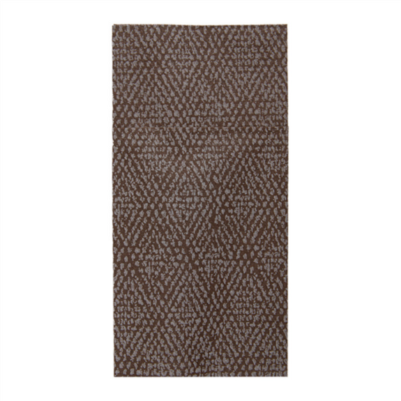 Les serviettes kangourou de 40x40 cm en couleur chocolat, fabriquées en matériau airlaid de 55 g/m², offrent une solution pratique et élégante pour la présentation des couverts dans les environnements de restauration. Leur conception inclut une poche intégrée qui permet d'accueillir couteau, fourchette et cuillère, facilitant ainsi le dressage des tables et apportant une touche de distinction. Le motif décoratif 'Keiko' présente un entrelacs de lignes croisées en teintes chocolat sur fond de la même couleur, évoquant la texture du lin et ajoutant de la sophistication à la table. Ce design neutre s'adapte à une large variété de styles de vaisselle et d'ambiances, des plus classiques aux plus contemporains. Le matériau airlaid offre une haute capacité d'absorption et de résistance, conservant son intégrité pendant le service et offrant une sensation douce et agréable au client. De plus, étant jetables, ces serviettes permettent de gagner du temps et des ressources en lavage et repassage, constituant une option efficace pour les restaurants, les hôtels et les services de traiteur.