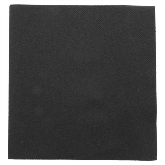 Serviette carrée de 50x50 cm en couleur noire, fabriquée en matériau airlaid de 55 g/m². Grâce à son grammage élevé, cette serviette offre une grande résistance et absorption, ce qui la rend particulièrement adaptée aux services de restauration nécessitant des produits avec présence et fonctionnalité.