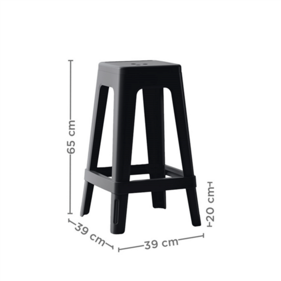 Ce tabouret empilable mesure 39 x 39 x 65 cm et présente un design moderne en noir, idéal pour un usage en intérieur et en extérieur. Fabriqué en polypropylène (PP), il est léger, résistant et facile à nettoyer, ce qui le rend parfait pour les bars, les terrasses et les restaurants. Son assise plate et sa structure robuste garantissent stabilité et confort, tandis que le repose-pieds intégré offre un soutien supplémentaire. Grâce à son design empilable, il optimise l'espace lorsqu'il n'est pas utilisé, facilitant son rangement. Son style contemporain et sa grande durabilité en font une option pratique et polyvalente pour tout établissement de restauration.