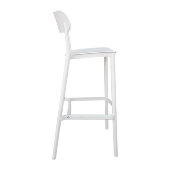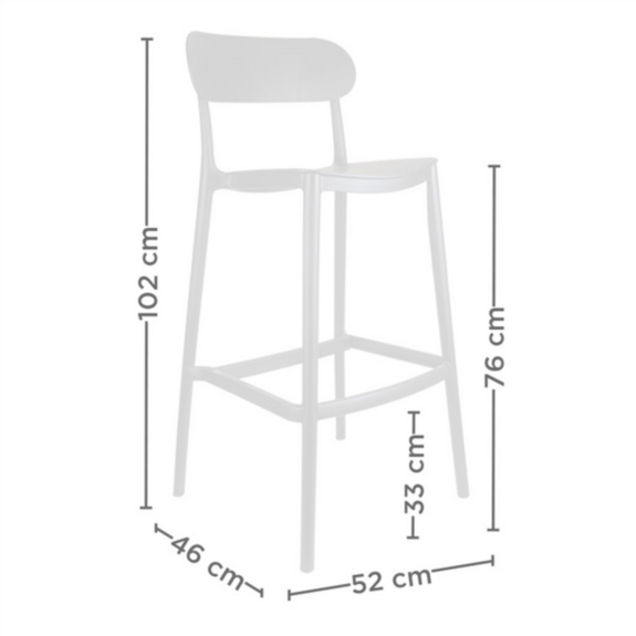Cette chaise de bar avec dossier mesure 46 x 52 x 102 cm et présente un design moderne, idéal pour une utilisation en intérieur et en extérieur. Fabriqué en polypropylène, il se distingue par sa structure légère mais résistante, avec des lignes épurées et une finition lisse de couleur blanche qui apporte une touche minimaliste et polyvalente. Sa hauteur est idéale pour les bars et les tables hautes, offrant une posture ergonomique grâce à son dossier incurvé qui améliore le confort. Son siège large et légèrement incurvé s'adapte à l'utilisateur, tandis que les pieds fins mais robustes comprennent des renforts transversaux qui servent de repose-pieds et apportent une plus grande stabilité. Ce tabouret est un excellent choix pour l'hôtellerie, les terrasses, les bars et les espaces professionnels qui recherchent fonctionnalité sans sacrifier le design. Son design fonctionnel et empilable permet d'optimiser l'espace lorsqu'il n'est pas utilisé, facilitant son stockage. Avec un style contemporain et polyvalent, ce tabouret est un excellent choix pour tout établissement de restauration.