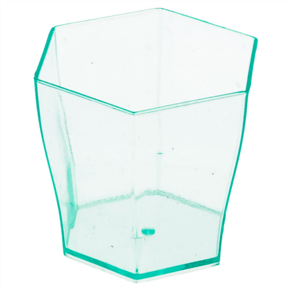 Verre hexagonal mise bouche vert d'eau transparent.